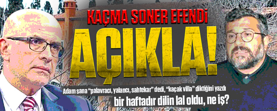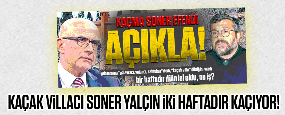 Yaklaşık iki hafta oldu. Soner Yalçın resmen kaçıyor. CHP milletvekili ve Hürriyet gazetesinin eski genel yayın yönetmeni Enis Berberoğlu tam bir hafta önce Sözcü gazetesi yazarı ve Oda TV’nin sahibi Soner Yalçın’ın kirli çamaşırlarını döken bir açıklama yapmıştı. Açıklamasında Yalçın’ın nasıl bir “palavracı”, nasıl bir “yalancı”, nasıl bir “iftiracı” olduğunu anlatmakla kalmadı, Çeşme’de kendisine nasıl kaçak villa yaptırdığını da açıkladı. Ama Soner Yalçın yaklaşık iki haftadır susuyor. “Kaçak villacı” Soner Yalçın resmen kaçıyor…