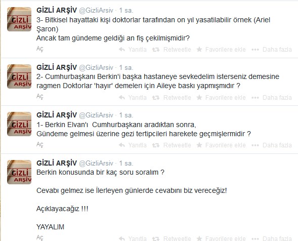 En korkunç iddia ise, “Berkin Elvan’ın fişini çektiriyoruz herkes sokağa dökülsün diyen paralel gazeteci ve vekiller kimlerdir? Açıklanmazsa biz açıklayacağız” şeklindeydi.