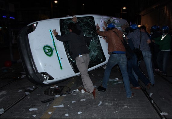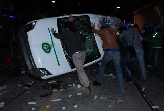 Soma’daki maden kazasını protesto etme bahanesiyle Türkiye’nin birçok yerinde yüzleri maskeli gruplar sokakları savaş alanına çevirerek, dükkanlara, araçlara ve çevreye zarar verdiler.