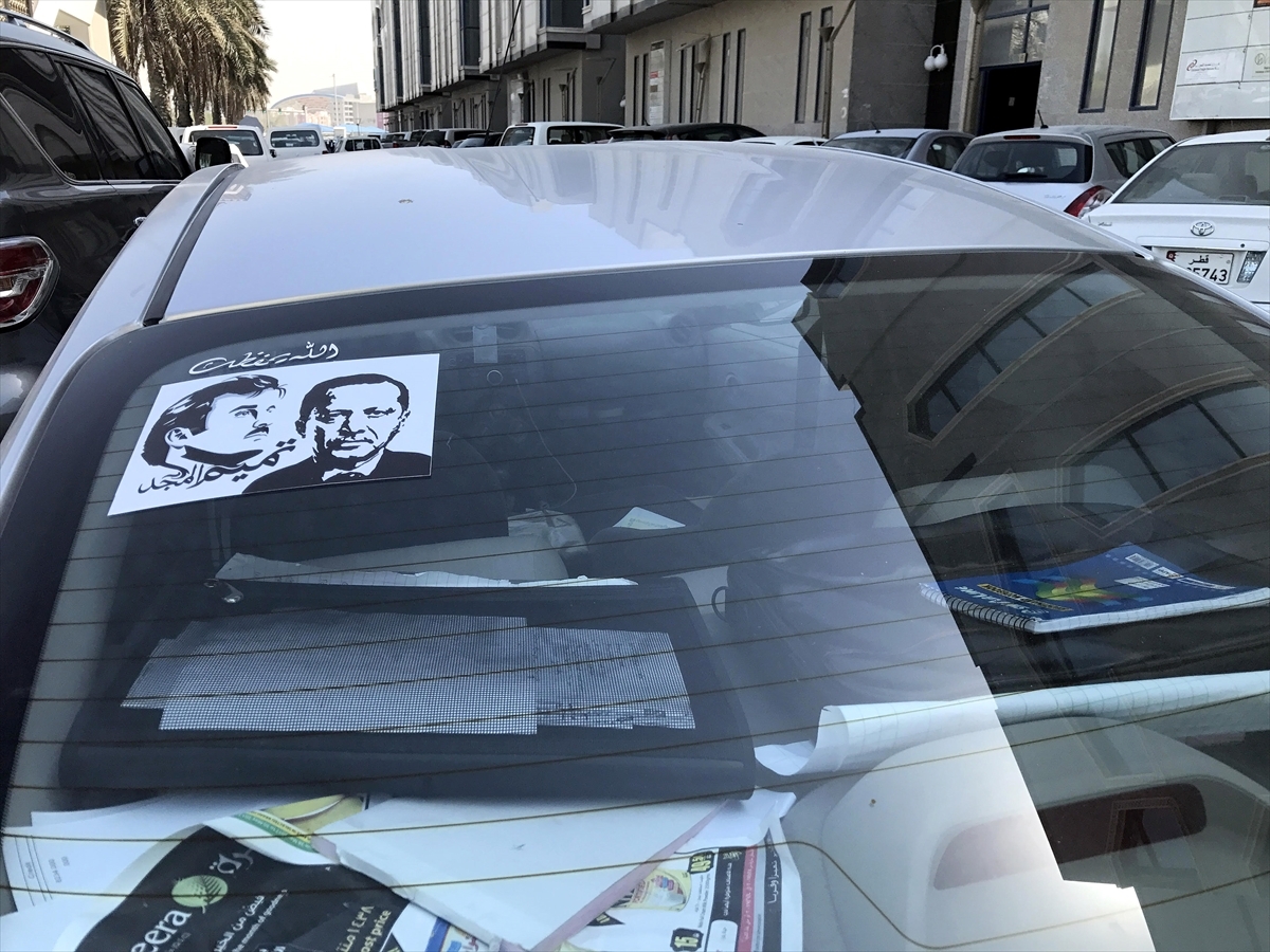 Katar’ın başkenti Doha’da neredeyse tüm araçların camlarında bu posterlere rastlamak mümkün.