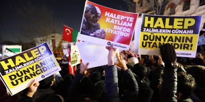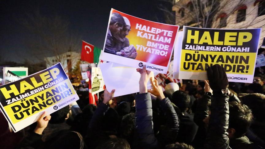 Suriye’nin Halep kentinde sivillere yönelik saldırılar, İran’ın Ankara ve İstanbul’daki temsilcilikleri önünde protesto edildi.