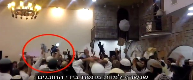 İsrail’in Kanal 10 televizyonunda yayınlanan ve Devabişe ailesinin evini kundaklayan yerleşimcilerin arkadaşları olan radikal Yahudilere ait bir düğünde çekildiği belirtilen görüntülerde, grubun ellerinde salladıkları Devabişe bebeğin resmi, molotofkokteyli, bıçak ve tüfeklerle dans ettiği görülüyor.
