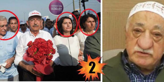 CHP Genel Başkanı Kemal Kılıçdaroğlu’nun sözde adalet yürüyüşüne PKK yöneticisi Mustafa Karasu’nun ardından HDP’den destek geldi. Dün HDP’lilerle kol kola yürüyen Kılıçdaroğlu’na son olarak da FETÖelebaşı Fetullah Gülen’den destek geldi. Gülen Türkiye’de kendini gizleyen kripto örgütçülerine ‘YÜRÜYÜN’ talimatı verdi.