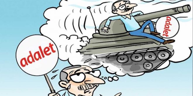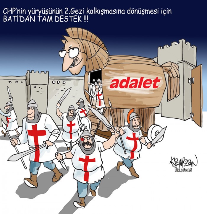 CHP Genel Başkanı Kemal Kılıçdaroğlu’nun arkasına FETÖ, PKK, DHKP-C gibi terör örgütlerini alarak yaptığı ve “adalet” kavramını tamamen istismar etmeye dayalı yürüyüşünün ne anlama geldiğini Diriliş Postası gazetesi karikatüristi Kasım Özkan’ın çarpıcı biçimde gözler önüne serdi. İşte o karikatürler…