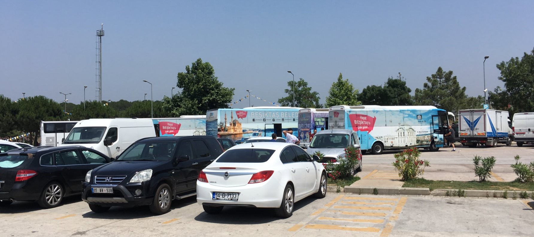 Fotoğrafta, CHP’li başkanların yönettiği Beşiktaş ve Kadıköy belediyelerinin, resmi otobüsleri dikkat çekti.