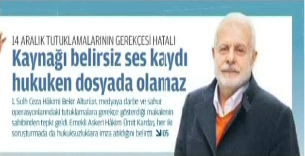 14 Aralık tutuklamaları ve devam eden yargılama sürecindeki ses kayıtlarının kaynağının belirsiz olduğunu ve bu yüzden dosyada yer alamayacağını söyleyen eski bir hakim’in açıklamalarına yer veren Zaman Gazetesi böylelikle kendisiyle bir kez daha çelişmiş oldu.