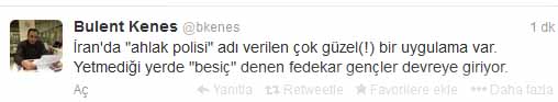 “İran’da ‘ahlak polisi’ adı verilen çok güzel(!) bir uygulama var. Yetmediği yerde ‘besiç’ denen fedakar gençler devreye giriyor.”
