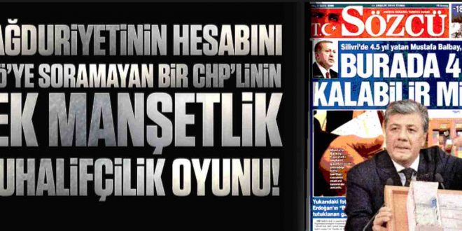 Sözcü bugün de yapacağını yapmış abuk-sabuk manşetlerinden birine daha imza atmış. “Silivri’de 4.5 yıl yatan Mustafa Balbay Erdoğan’a sordu: Burada 4 gün kalabilir misin?”