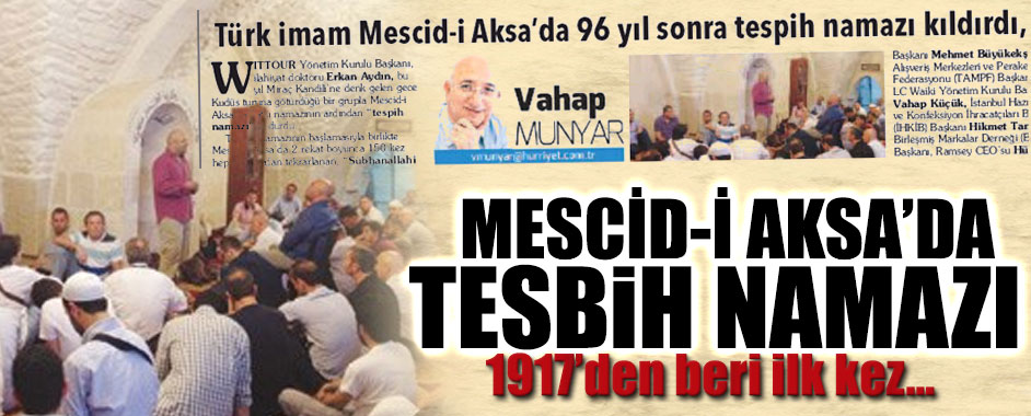 Tesbih namazının başlamasıyla birlikte Mescid-i Aksa’da 2 rekat boyunca 150 kez hep bir ağızdan tekrarlanan, “Sübhanallahi velhamdülillahi ve lâilahe illallahu vallahu ekber” nidası yükseldi.