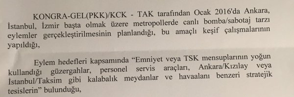 Yazıda, İstanbul, Ankara ve İzmir gibi metropollerde, terör örgütü PKK ve tüm yapılanmalarının canlı bomba ve sabotaj eylemleri planladığı hatta keşif çalışmalarının da yapıldığı yer aldı. Uyarı yazısında, Türk Silahlı Kuvvetleriyle emniyet mensuplarının kullandığı güzergahlarının ve servis toplanma yerlerinin hedef olabileceği uyarısında bulunuldu. MİT, uyarı yazısında olası riskli bölgeler arasında ankara Kızılay’a da yer verdi. Gerekli önlemlerin alınmasını tavsiye etti.