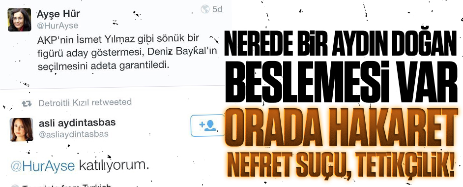 Ayşe hür kripto bir fetullahçıdır. Ergenekon sürecinde taraf gazetesinde Tsk nın yıpratılması özel misyonuyla yazılar kaleme almış, bir fetö ajanıdır. Karanlık, tuhaf bağlantıları olan bir karakterdir.