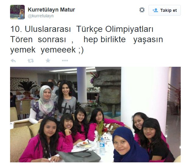 Kurretülayn Matur ayrıca, Gülen Cemaati’nin her yıl düzenlediği Türkçe Olimpiyatları’na da katılmış, olimpiyatlardan yabancı ülkelerin çocuklarıyla çekilen fotoğraflarını sosyal medyadan duyurmuştu.