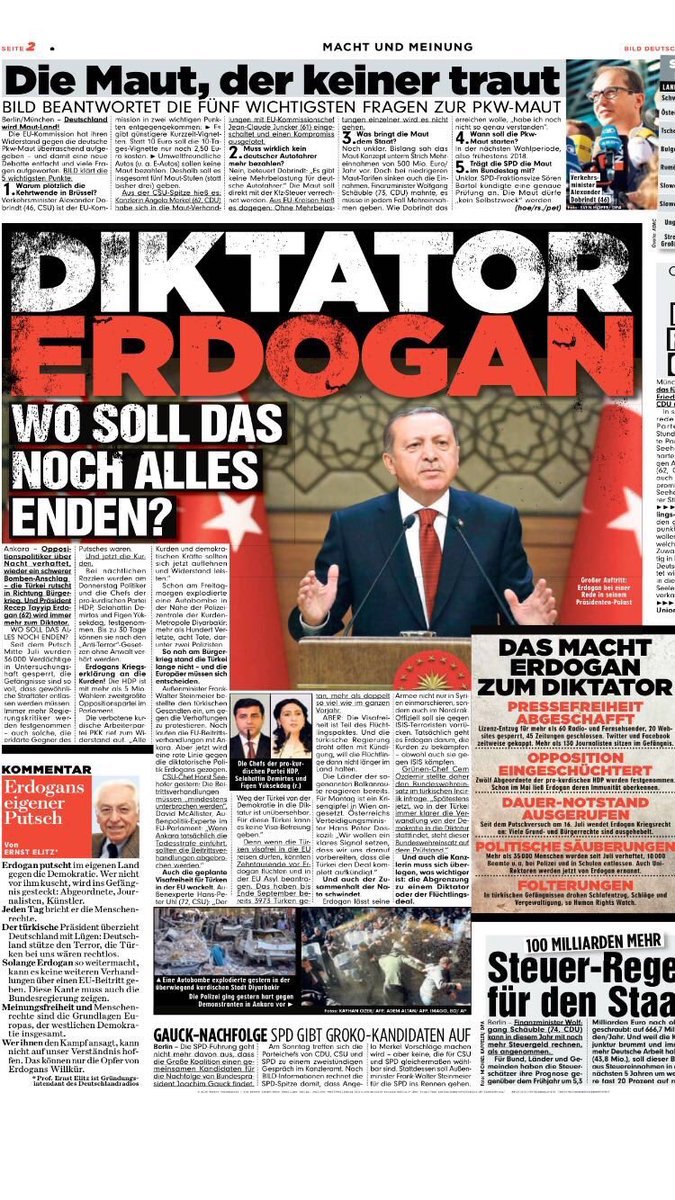 Terör Alman gazetesi Bild, Türkiye’nin iç savaşa sürüklendiğini savunarak, ‘Diktatör Erdoğan’ başlıklı bir haber yayınladı.