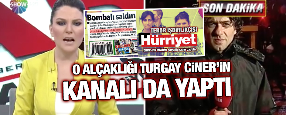 Dün Sultanahmet Meydanı’ndaki Turizm Şube müdürlüğüne düzenlenen terör saldırısında kendisini patlatan canlı bomba için “çarşaflı kadın” şeklindeki skandal ifadeyi Hürriyet gazetesi dışında Show TV’nin de kullandığı ortaya çıktı.
