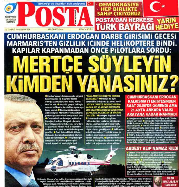 Cumhurbaşkanımız o gece uçağa bindiği zaman pilotlara “mertçe söyleyin, hangi taraftasınız” diye sorduğuna yönelik haberler var. Böyle bir şey olmadı. Ben bu soruya şahit olmadım.