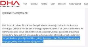 Doğan Haber Ajansı’nın Suriyeli kadın ve bebeğinin alçakça katledilmesiyle ilgili abonelerine servis ettiği habere tepkiler …