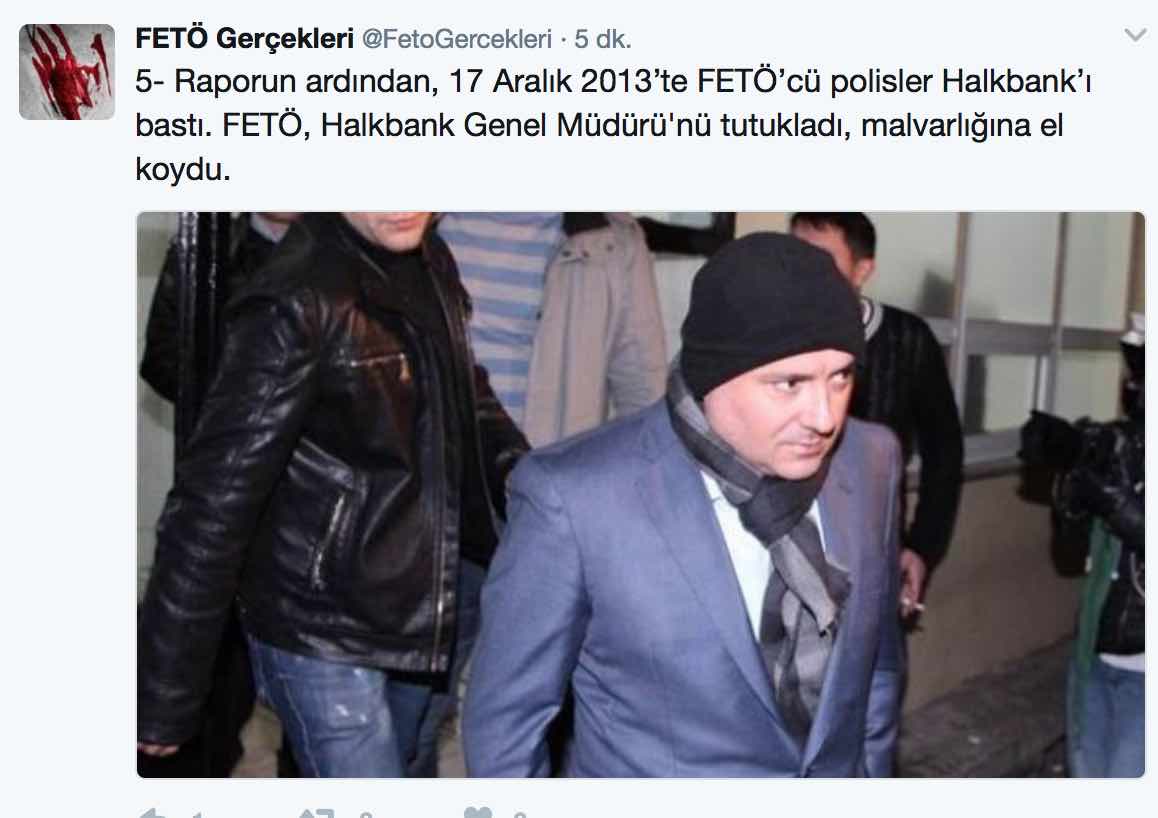 “ABD, Kuzey Irak petrolünün parasının Halkbank’ta toplanmasına karşı çıkmış, aracı finans kurumunun ABD menşeli olması için bastırmıştı. Bu baskınla bankamız databasenden elde edilen Türk İş Dünyasına ilişkin veriler çok değerlidir ve korunması hayatidir. Ülkemizin ticari bilgilerini içeren bu verilerin korunması gerektiğini ve YABAN ELLER’e servis edilmemesi gereğini İHTAR ediyoruz! “