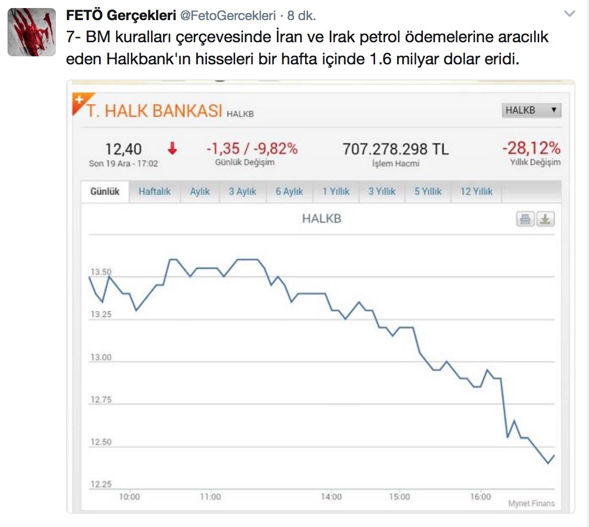 17 Aralık darbe girişiminde asıl hedefinin Halkbank olması dikkat çekti. Halkbank’ın hedef seçilmesinin nedeni olarak Türkiye’nin İran ambargosunu delmesi ve Kürt bölgesi petrolünün paralarının Halkbank’ta birikecek olması öne sürüldü. Konu ile ilgili İsrail lobisi Türkiye aleyhine bir kampanya başlattı. ABD Temsilciler Meclisinde ise İran ile ticarete aracılık ettiği gerekçesiyle Halkbank suçlandı.