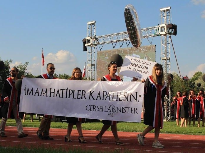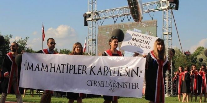 “İmam hatipler kapatılsın” pankartı, bir eğitim kurumunun mezuniyet töreninde başka bir eğitim kurumunun kapatılmasını istemenin, düşüncelerinin eğitim olmadığını, kendisinden başkasına hayat hakkı tanımamayı gözler önüne serdi.