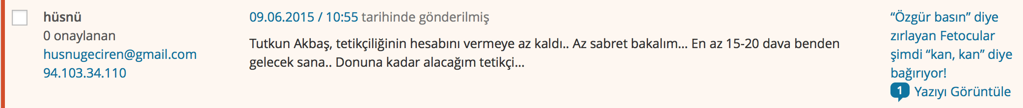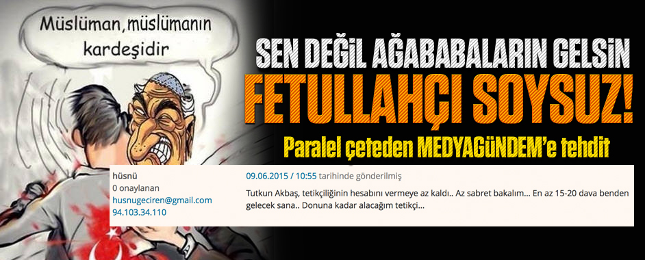 MEDYAGÜNDEM’e 17-25 Aralık darbe sürecinde hukuku yasadışı kullanarak kumpas kuran Fetullahçılar şimdi de tehditlere başladı.