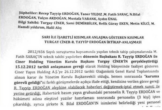 Paralel örgütün kalemşörleri vasıtasıyla her defasında “yok” dediği belgeler gün yüzüne çıkıyor. Paralel medya organları tarafından yalanlanan “Dönemin Başbakanı” ifadesinin 2012/656 esas numaralı 25 Aralık yolsuzluk soruşturmasında yazılı olduğu ortaya çıkmıştı. Aynı şekilde paralel yapının medya organı Zaman Gazetesi, aralarında Necmettin Erbakan, Arzuhan Doğan Yalçındağ, Ertuğrul Özkök gibi isimlerin de bulunduğu 64 kişinin paralel örgüt tarafından sahte isimlerle dinlendiği ortaya çıktığında bu haberi yalanlamaya çalışmıştı. Ancak ısrarla reddettikleri 64 kişilik VIP dinleme listesini STAR Gazetesi dün belgeleriyle manşetine taşıdı. Paralel medyanın yalanladığı bir başka ifade de Başbakan Erdoğan için fezlekelerde bahsi geçen “örgüt lideri” ifadesiydi. STAR’ın ele geçirdiği fezlekede Erdoğan için “Örgüt Lideri” ifadesinin kullanıldığı ortaya çıktı. Fezlekede iki iş adamı arasında geçen bir konuşmaya atıfta bulunulduktan sonra şöyle deniliyor: “Yapılan çalışmalarda … Medya Grubunun satışı ve para konularının talimatını örgüt lideri Recep Tayyip Erdoğan’ın, Bakan Binali Yıldırım’ın bizzat takibi ile başta … olmak üzere … ve … isimli şahıslara verdiği anlaşılmış olup bu görüşmelerde R. Tayyip Erdoğan’ın örgüt üyelerine verdiği talimatların ayrıntıları ve … de örgütteki hiyerarşik ilişkiyi benimsediğine dair açıklamaları tespit edilmiştir.”