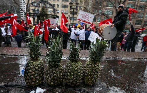 ”Cumhurbaşkanımızın, Başbakanımızın ve Türkiyemizin yükselişini engellemeye ve önünü kesmeye çalışanları protesto etmek için burada bulunuyoruz. Her zaman olduğu gibi ülkemizin yanında, vatanımızın ve bayrağımızın yanında olduğumuz göstermek için bugün de buraya geldik. ”