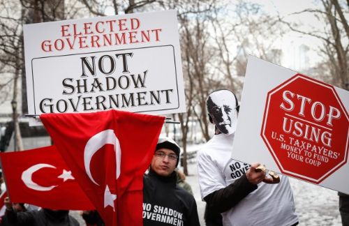 Mitingde, ”Paralel devlet istemiyoruz”, ”ABD vergi mükelleflerinin parasını kullanarak grubunuzu desteklemeye son verin”, ”Demokrasiye saygı” ve ”Halkın sesi, bir kişinin sesi değil” yazılı pankartlar taşındı.