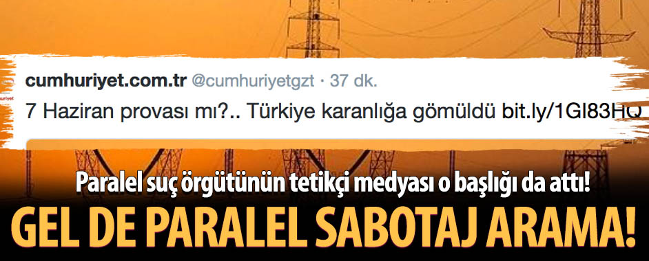 Bu manşeti gördükten sonra büyük elektrik kesintisinde paralel terör örgütü parmağı aranırsa kimse kızmasın!