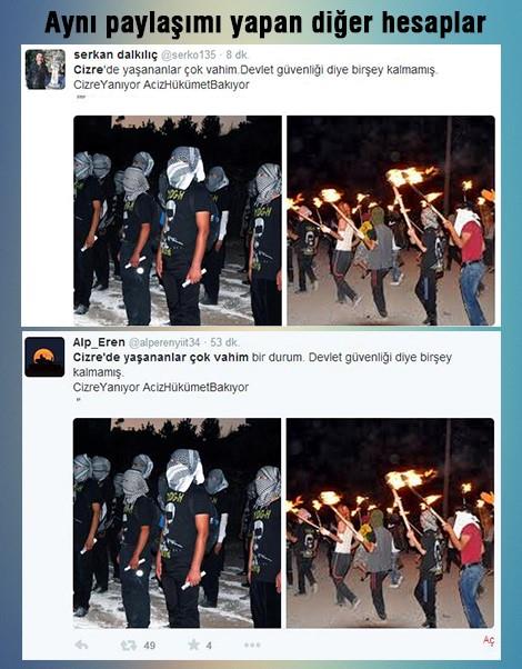 Gezi vandallığında sık sık karşımıza çıkan eski fotoğrafı yeniden paylaşma taktiği Cizre provokasyonunda da uygulanıyor.