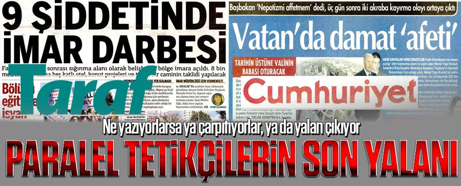 Taraf ve Cumhuriyet gazetelerinde Vatan Caddesi’de Migros’un bulunduğu alanın imara açıldığı iddiasının yer aldığı haberler yalan çıktı.Taraf Gazetesi 1964’ten beri imara açık olan arsayı ilk kez imara açılıyormuş gibi yansıttı. Cumhuriyet ise dayanağı olmayan bilgilerle İstanbul Büyükşehir Belediye Başkanı Kadir Topbaş’ı hedef aldı.