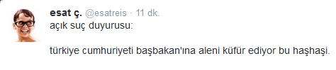 Twitter’da “esat ç.”ye yazdığı aleni küfür sonrası soysuz hain haşhaşiye büyük tepki  gösterildi.