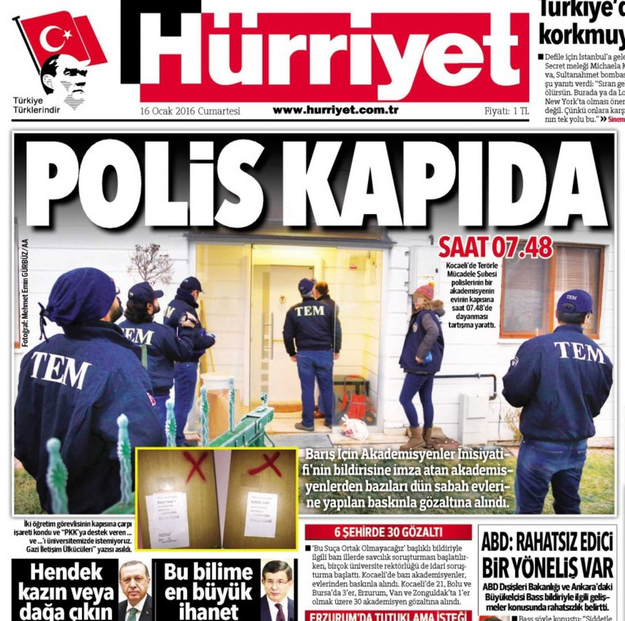 HÜRRİYET PKK SEVİCİ AKADEMİSYENLERİ MANŞET YAPTI