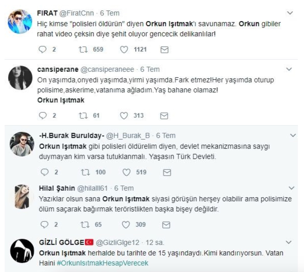 Milyonlarca takipçisi olan youtuber Orkun Işıtmak gezi kalkışmasını provoke eden videosunun sosyal medyada yayılmasıyla bu hafta gündemden düşmedi. İlk yayınlanan videosunda polise küfür ettiği duyuluyordu. Sonrasında yayılan videoda ise gezi parkı eylemcilerine “Polisler orada haydi öldürelim!” dediği ve devlete küfür ettiği videosu ortaya çıktı.