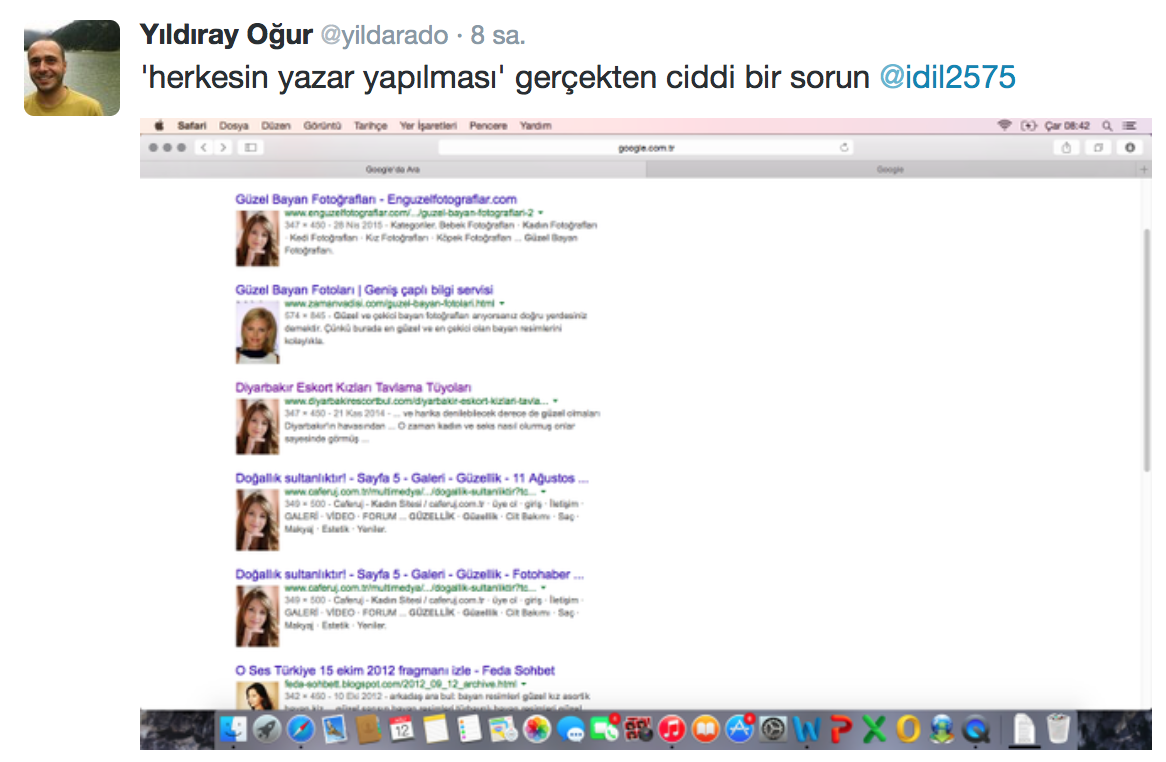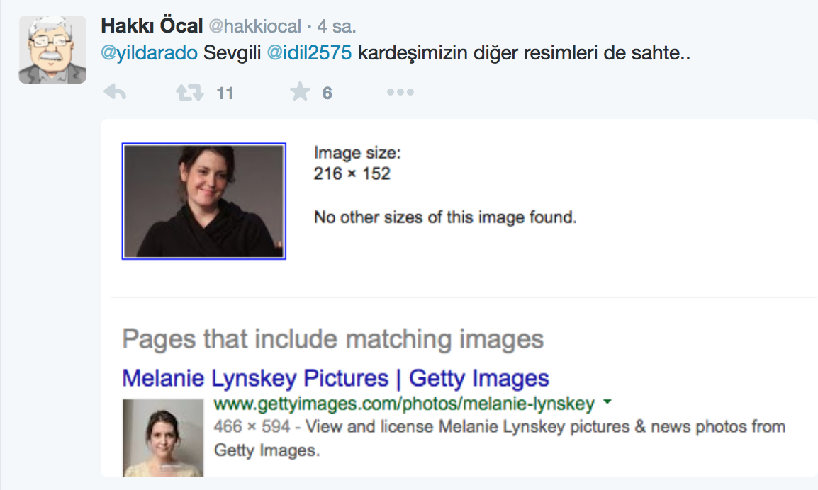 Oğur da Twitter profilindeki fotoğrafı internette basit bir aramadan geçirerek İdil Bulur adındaki Fetocu trolün ipliğini pazara çıkarmaya başlıyor.
