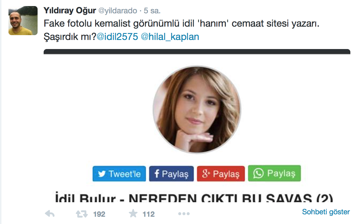Oğur’un deşifre ettiği fake hesap, İdil Bulur adında profilinde Atatürkçü görünen bir Fetocu operasyon çocuğu, yani trolü…