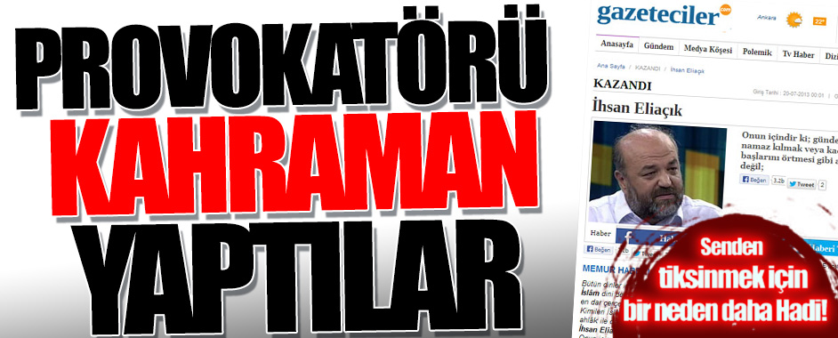 Tüm bunları neden mi anlattık? Hemen izah edelim. İnternethaber Yayın Grubuna ait Gazeteciler.com’da tüm bu özelliklere sahip olan provokatör İhsan Eliaçık, günün kazananı olmuş ve adeta kahraman ilan edilmiş.