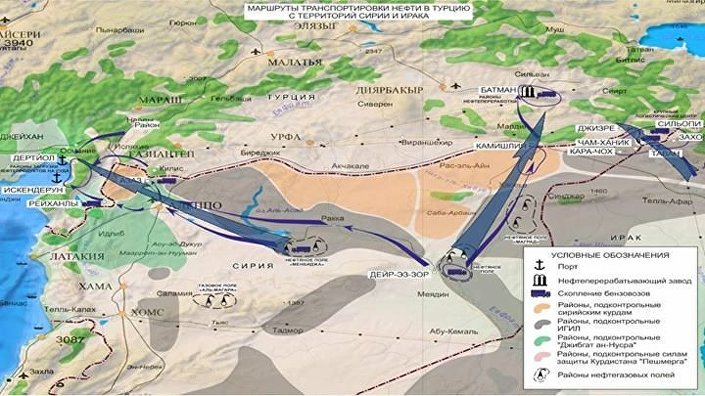 (Rus Savunma Bakanlığı Türkiye’nin IŞİD’den petrol aldığı iddiasını bu haritayla savunmuştu)