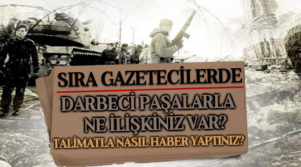 Dönemin bazı medya patronları, gazete yöneticileri ve köşe yazarlarına Genelkurmay ve Gölcük’te yapılan aramalarda ele geçirilen belgelerde ortaya çıkan “darbeci generallerle temasları” ve “talimatla nasıl haber yaptıkları”na ilişkin sorular yöneltilecek.