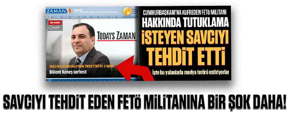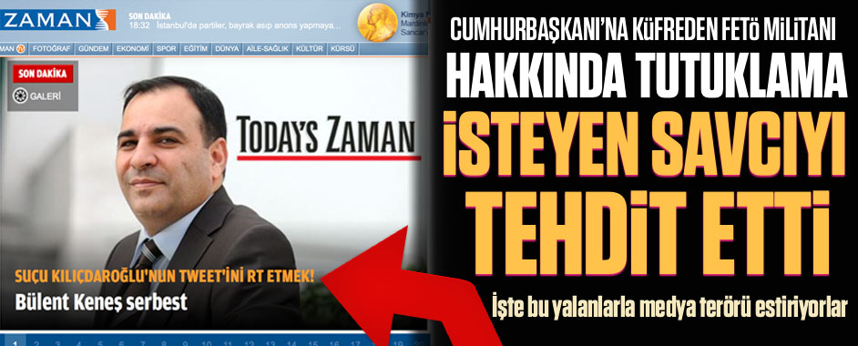 Cumhurbaşkanı Recep Tayyip Erdoğan’a yönelik hakaret içerikli tweetler attığı gerekçesiyle dün tutuklanmak üzere Nöbetçi Sulh Ceza Hakimliği’ne sevk edilen fakat adli kontrol kararıyla serbest bırakılan Today’s Zaman GYY Bülent Keneş hakkında savcılığın itirazı üzerine tutuklamaya yönelik yakalama kararı çıkarıldı.