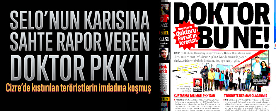 Cizre’de bir bodrum katında yaralı oldukları iddia edilen PKK’lı teröristleri kurtarmaya gidenlerin arasında HDP Eş Başkanı Demirtaş’ın öğretmen eşine uzun süreli rapor veren doktor da var.
