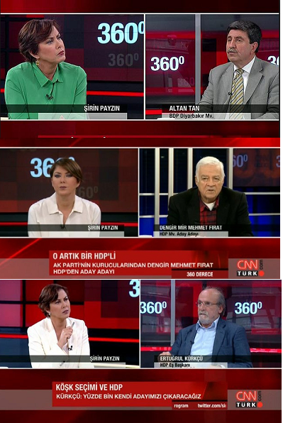 Şirin Payzın, Başbakan Davutoğlu’nun eski başdanışmanı Etyen Mahçupyan’ın “Basın özgürdür. Siz kimi isteyip de programa çıkaramıyorsunuz?” sorusuna şaşırtan bir yanıt verdi. Payzın, HDP’lileri defalarca konuk ettiği programları saymayarak, “Basın özgür değil, mesela HDP’lileri CNN Türk’e çıkaramıyoruz” dedi.