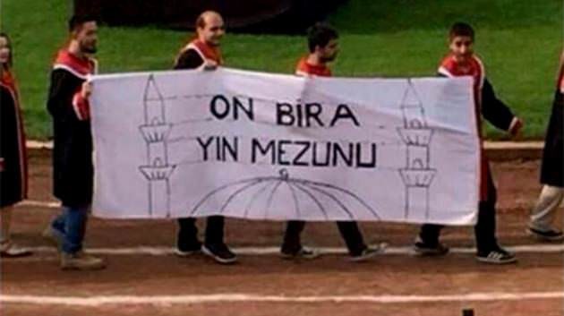 Daha önce dindar öğrencilere yapılan saldırılar ile gündem olan ODTÜ’lüler şimdi de, mizah kılıfıyla Ramazan ayına hakaret etti. Ramazan ayında camilerin minareleri arasına asılan mahyalar ile gönderme yapılan pankarta “On bira yın mezunu” yazıldı.