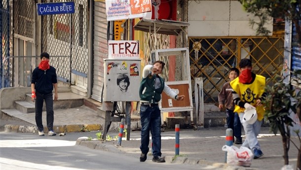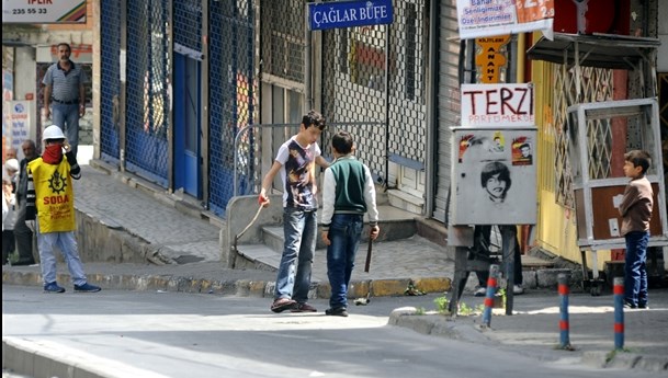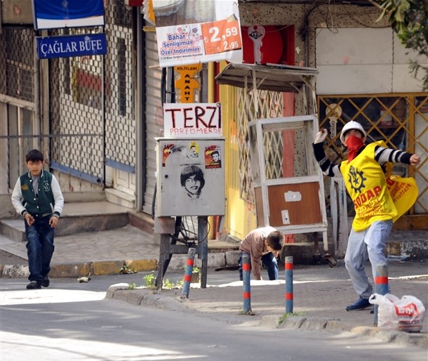 2 polisin ve 1 vatandaşın yaralanmasına neden olan göstericiler Okmeydanı’nın ara sokaklarına dağıldı. Polise taşlı ve sopalı karşılık verenler arasında çocukların olduğu görüldü. Yüzlerini peçe ile kapatan grubun çocukları polise karşılık vermesi için yönlendirdiği anlar Yeni Şafak muhabiri Oktay Yıldırım’ın çektiği fotoğraflara yansıdı.