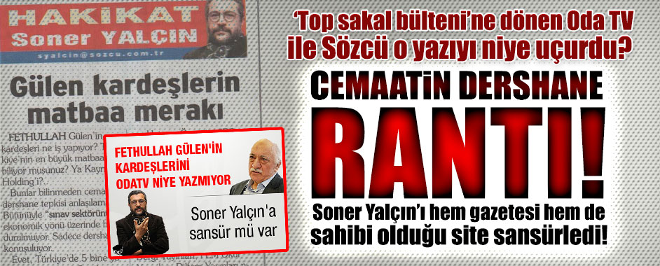 Nasıl cemaat medyasının operasyon ayağında yer aldığı tartışmaları yapılan Sözcü gazetesinin kritik konularda bir “cemaat hassasiyeti” varsa, belli ki Soner Yalçın’ın sitesi Oda TV de “top sakal çetesi” bülteni olduğundan bu yana böyle hassasiyetler belirdi.