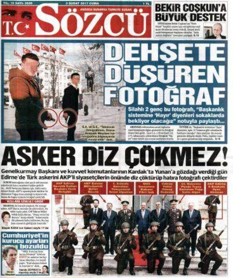 Her fırsatta maniple haberler yapması ile ünlenen Sözcü Gazetesi bu haberi de “Asker diz çökmez” başlığıyla manşete taşımıştı.