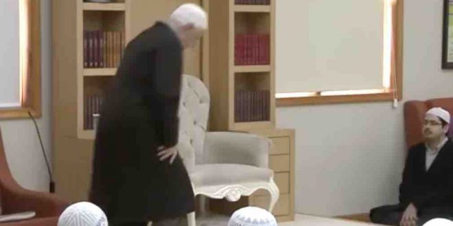 Teröristbaşı Fetullah Gülen’in konuşmasının başında “koltuk değiştirmesi” de dikkat çekiyor. Gülen, “Kendini küçük gör ki, kendinde eksiklik gör ki, nezd-i Ulûhiyette bir kıymet-i harbiyeye ulaşasın!.. Kendini büyük gördükçe, nezd-i Ulûhiyette -hiç farkına varmadan- mâruz-u sukût olursun, düşmeye maruz kalırsın” sözlerinin ardından koltuk değiştiriyor.