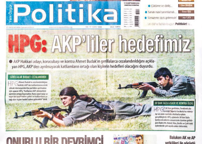 Almanya’dan yayın yapan terör örgütü PKK’nın yayın organı Yeni Özgür Politika’nın “AKP’liler hedefimiz” haberiyle hedef göstermesinden sonra Türkiye’de siyasi cinayetler arttı. Terör gazetesinde yayımlanan ve AK Partilileri hedef gösteren haberde “HPG, AKP’den ayrılmayarak katliamların ortağı olan kişilerin hedefleri olacağını duyurdu” ifadeleri yer aldı. Yeni Özgür Politika’nın hedef göstermesinden sonra AK Parti Van Özalp İlçe Başkan Yardımcısı Aydın Muştu ve AK Parti Diyarbakır Dicle İlçe Başkanı Deryan Aktert hain saldırılarda katledildi.