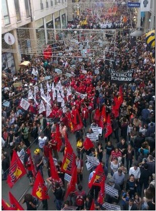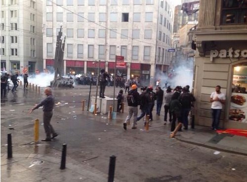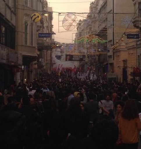 Sosyal medya üzerinden yapılan çağrılar üzerine birçok sivil toplum örgütü üyesi binlerce kişi, akşam saat 19.00 sıralında Beyoğlu Tünel meydanında bir araya geldi. Soma’da yaşanan maden faciasını protesto eden grup, buradan Taksim Meydanı’na doğru yürüyüşe geçti. Galatasaray Meydanı’na ulaşan grup, burada polis engeli ile karşılaştı. Polisin Taksim Meydanı’na yürümek için izin vermediği grup, meydana çıkma konusunda ısrarcı oldu. Daha sonra gruptan bazı göstericiler, polise taş ve şişe atmaya başladı. Yaşanan gerginliğin ardından polis, gruba biber gazı ve tazyikli su ile müdahale etti. Göstericiler ile polis arasındaki gerginlik ara sokaklarda devam ediyor.