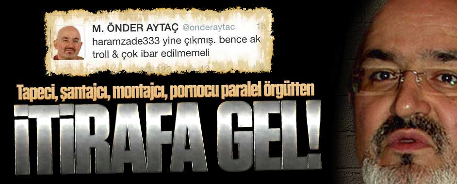 Önder Aytaç paralel yapılanmanın çok önemli ayağıdır. Önder, şerefsizliği artık bırakıp şerefinle yaşamaya çalış, yok hala şerefsizliğe devam edeceğim diyorsan o başka! Şerefsizliğinden ya tüm olanı biteni anlatıp kurtulacaksın, ya da ailenin yüzüne bakamayacak hale nasıl getireceğimi göreceksin. Bu yolun yol olmadığını, yolun tükendiğini bilecek kadar akıllı bir insan olduğunu biliyorum, uzatmalarla hiçbir yere varılamayacağı bir döneme girildiğini ötekilerden daha iyi biliyorsun, hala belki, bir umut, ihtimal, muhtemel gibi kavramlarla gününü geçirmeyeceğini de biliyorum. Umarım son bir orospuluk yapayım gibi bir gaflete düşmezsin. Eğer son kaseti de yayınlayayım da ondan sonra düşünürüz gibi bir cahillik yaptığın takdirde bunun mesuliyeti sana aittir. Başkası da yapmaya kalkarsa bunu deşifre alenen deşifre edecek kişi sensin Önder! Ya adam olacaksın ya da şerefsizliğe devam edceksin.