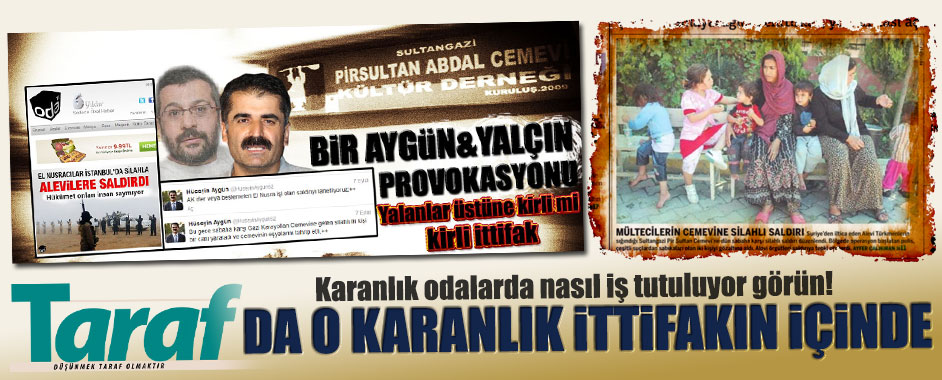 Hüseyin Aygün ile Soner Yalçın “kirli bir ittifak”la mezhep çatışması için provokasyon üstüne provokasyon yaparken, Taraf’ın da sinsice o senaryoya destek veren yayınları deşifre oldu.